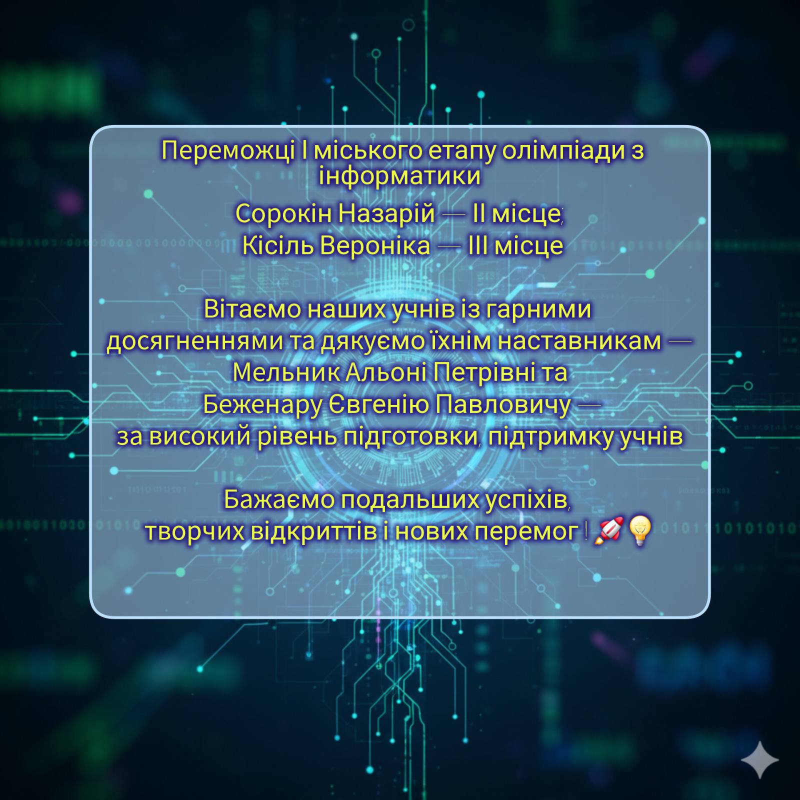 Вітаємо переможців І етапу Всеукраїнських учнівських олімпіад
